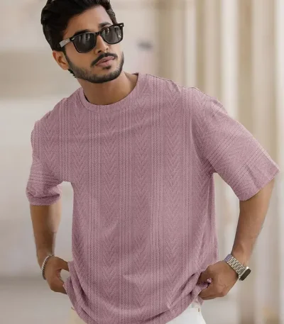 Men Solid Round Neck Polyester Pink T-Shirt