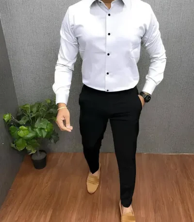 Men Regular Fit Solid Button Down Collar Formal Shirt