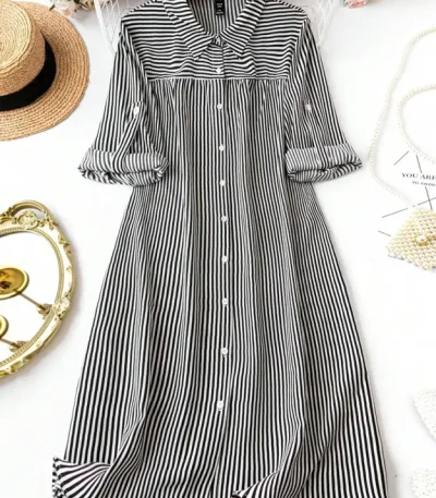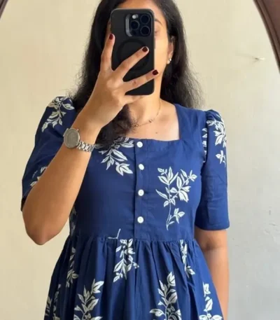 ₹463.00Women Fit and Flare Blue, White Midi/Calf Length Dress