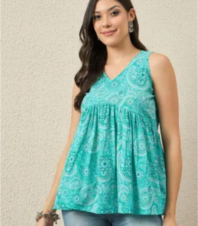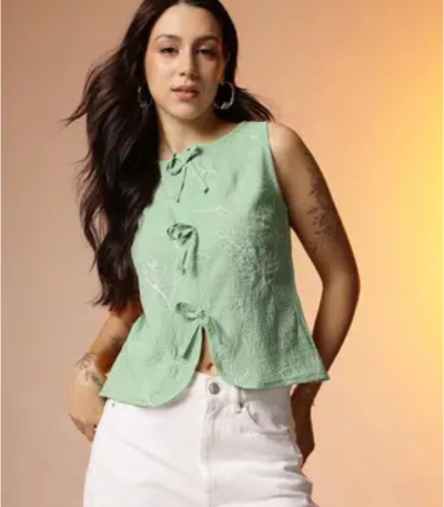 Casual Sleeveless Ethnic Motifs Women Light Green Top