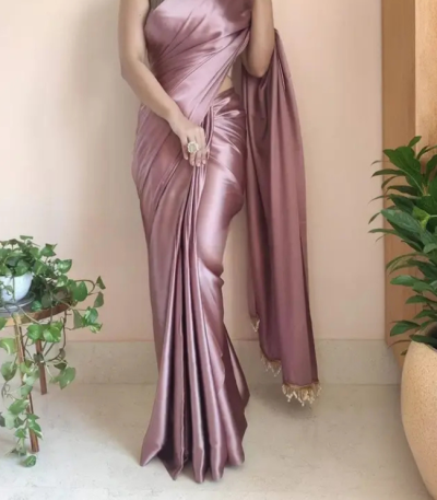 Solid/Plain Bollywood Satin, Silk Blend Saree (Pink)
