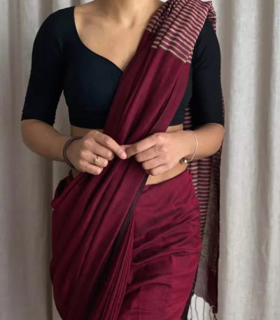 Printed Bollywood Pure Cotton Saree (Brown)