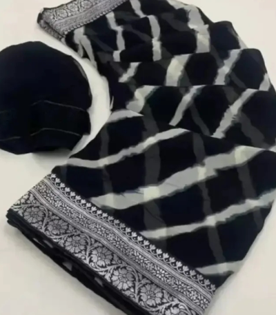 Striped Bollywood Georgette Saree (Black)