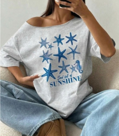 Women Printed Round Neck Pure Cotton Beige T-Shirt