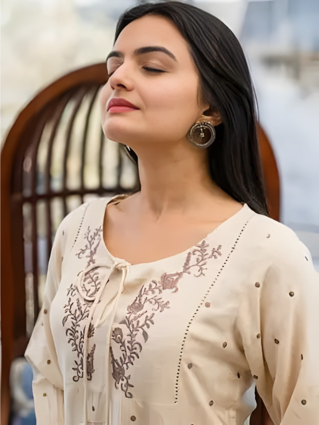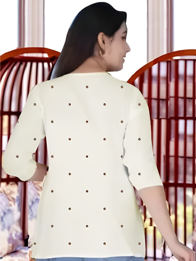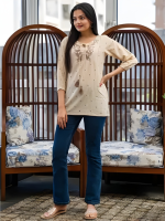Party Regular Sleeves Embroidered Women Beige Top