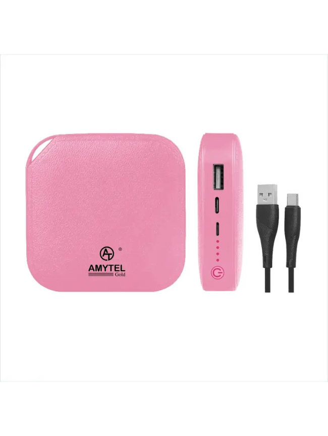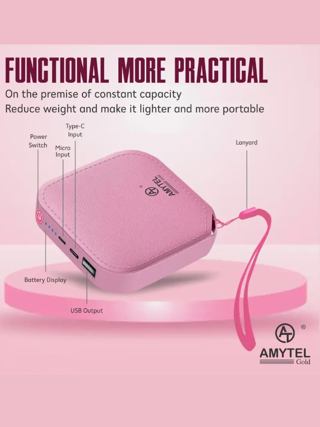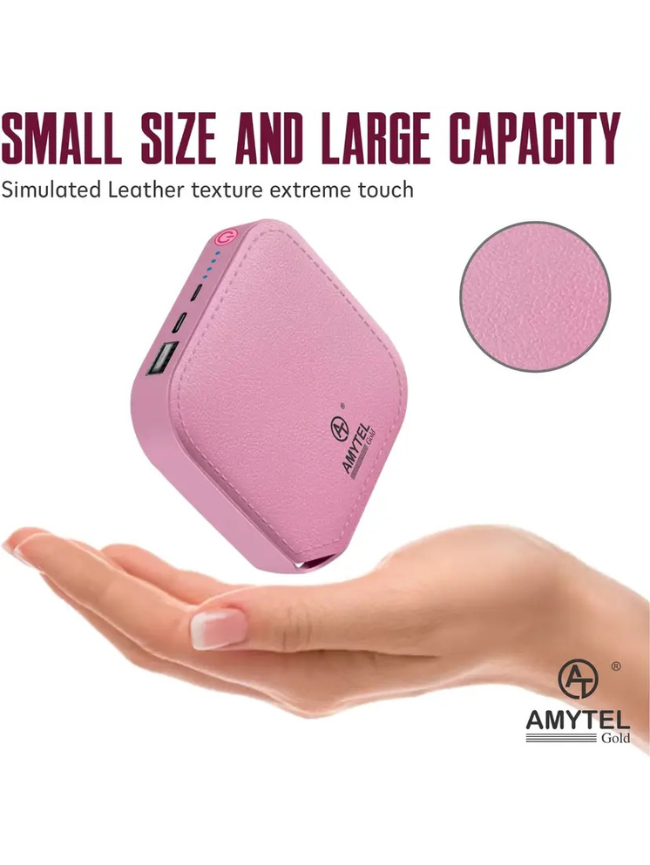 AMYTEL 10000 mAh 15 W Mini Pocket Size Power Bank (Pink, Lithium-ion, Power Delivery 2.0, Quick Charge 2.0, Quick Charge 3.0 for Mobile, Tablet, Earbuds, Speaker, Trimmer)