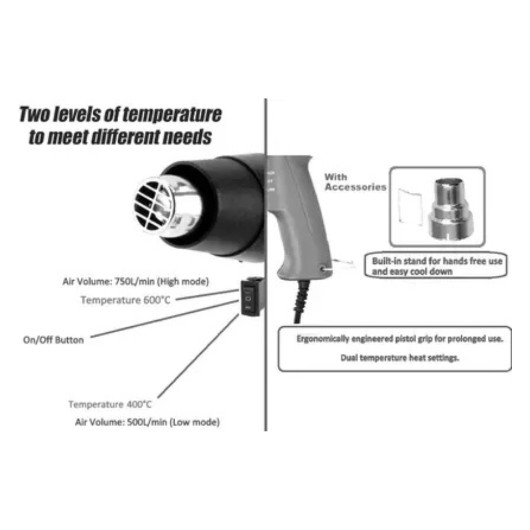 BALRAMA 2000 Watt Power Electric Heat Gun Industrial Electronic Commercial Hot Air Gun Combo Set (Red)