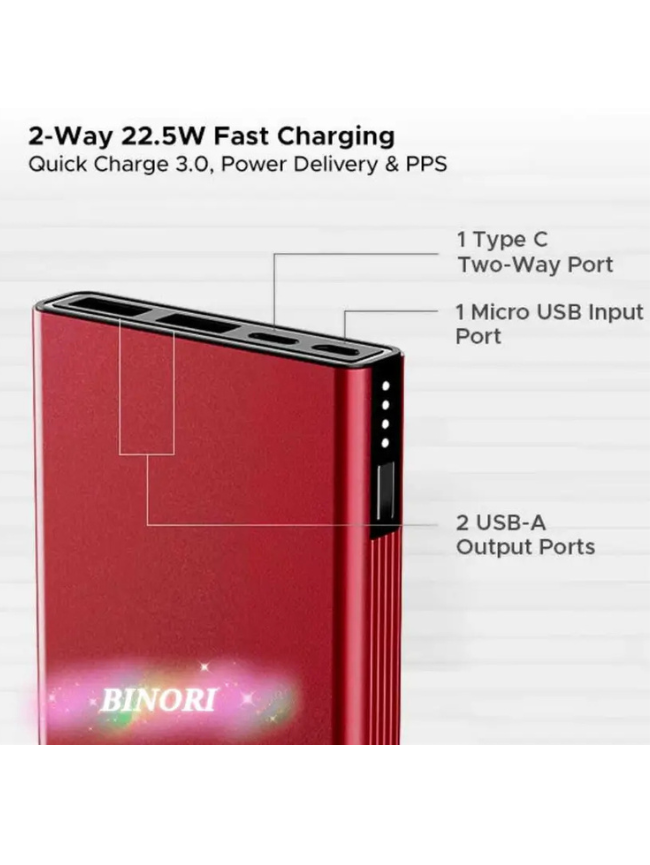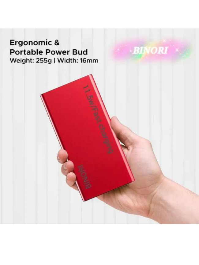 Binori 10000 mAh 11.5 W Compact Power Bank (Red, Lithium Polymer, Fast Charging for Mobile, Earbuds, Smartwatch, Smartband, Speaker, Tablet, Trimmer)