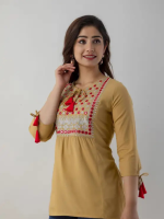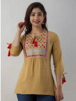 Casual Regular Sleeves Embroidered Women Beige Top