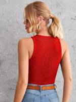 Casual Sleeveless Striped Women Red Top