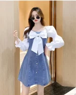 Women Fit and Flare Blue Above Knee/Mid Thigh Length Dress