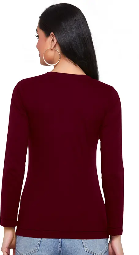 Women Printed Round Neck Cotton Blend Maroon T-Shirt
