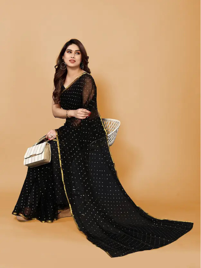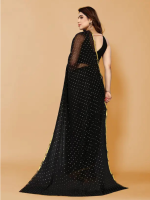 Embellished, Printed Bollywood Chiffon Saree (Black, Gold)