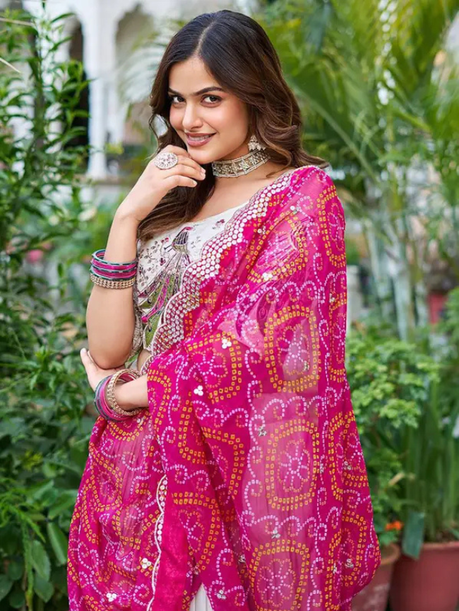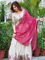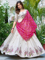 Embroidered Semi Stitched Lehenga Choli (White, Pink)