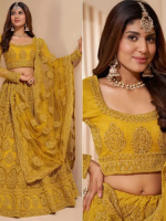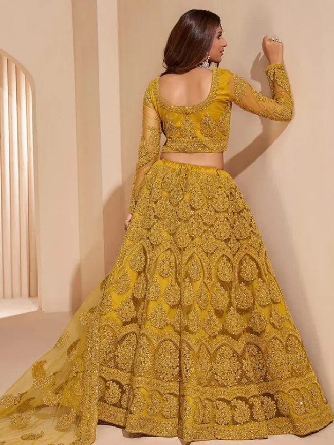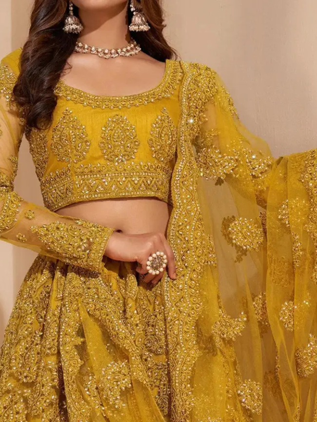 Embroidered Semi Stitched Lehenga Choli (Yellow)
