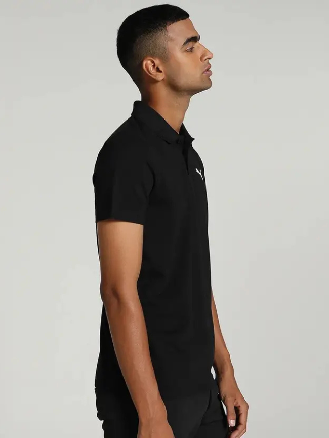ESS Logo M Men Solid Polo Neck Pure Cotton Black T-Shirt