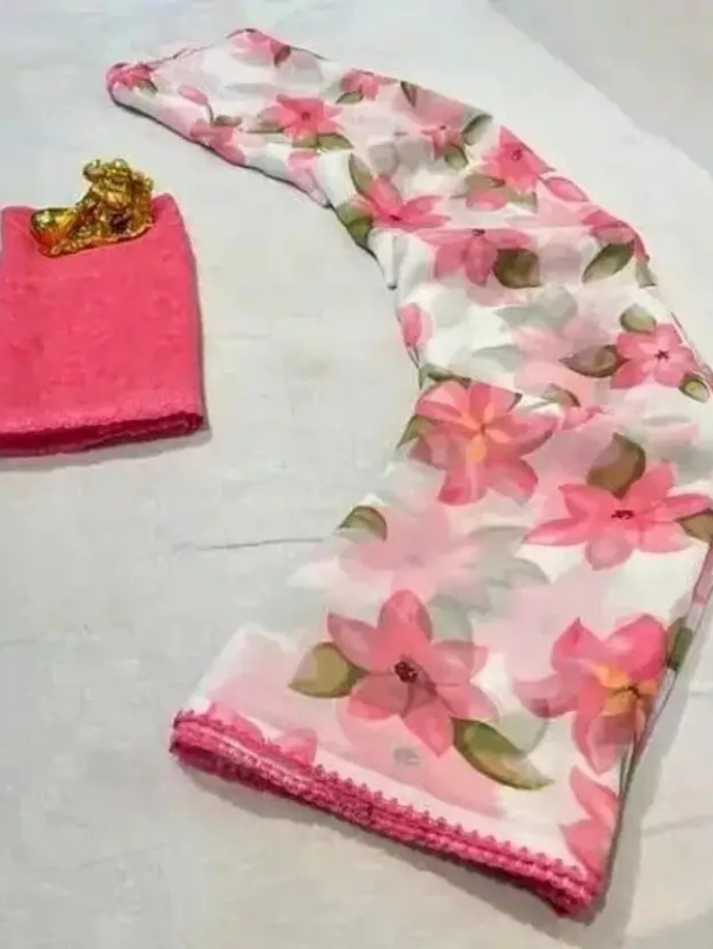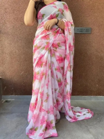 Floral Print Bollywood Chiffon Saree (Pack of 2, Pink)