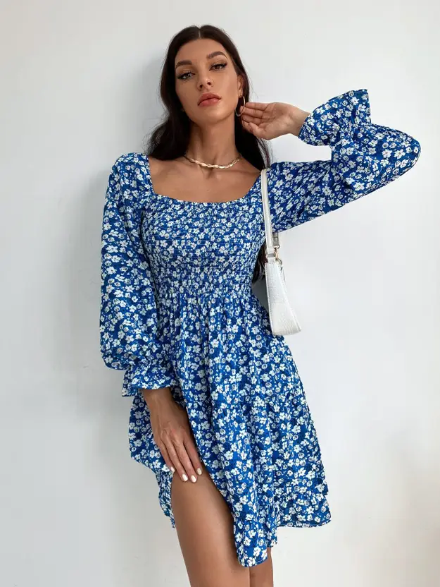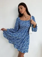 Women Fit and Flare Blue Above Knee/Mid Thigh Length Dress