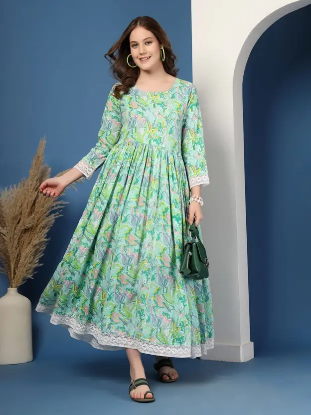 Women Fit and Flare Green Midi/Calf Length Dress