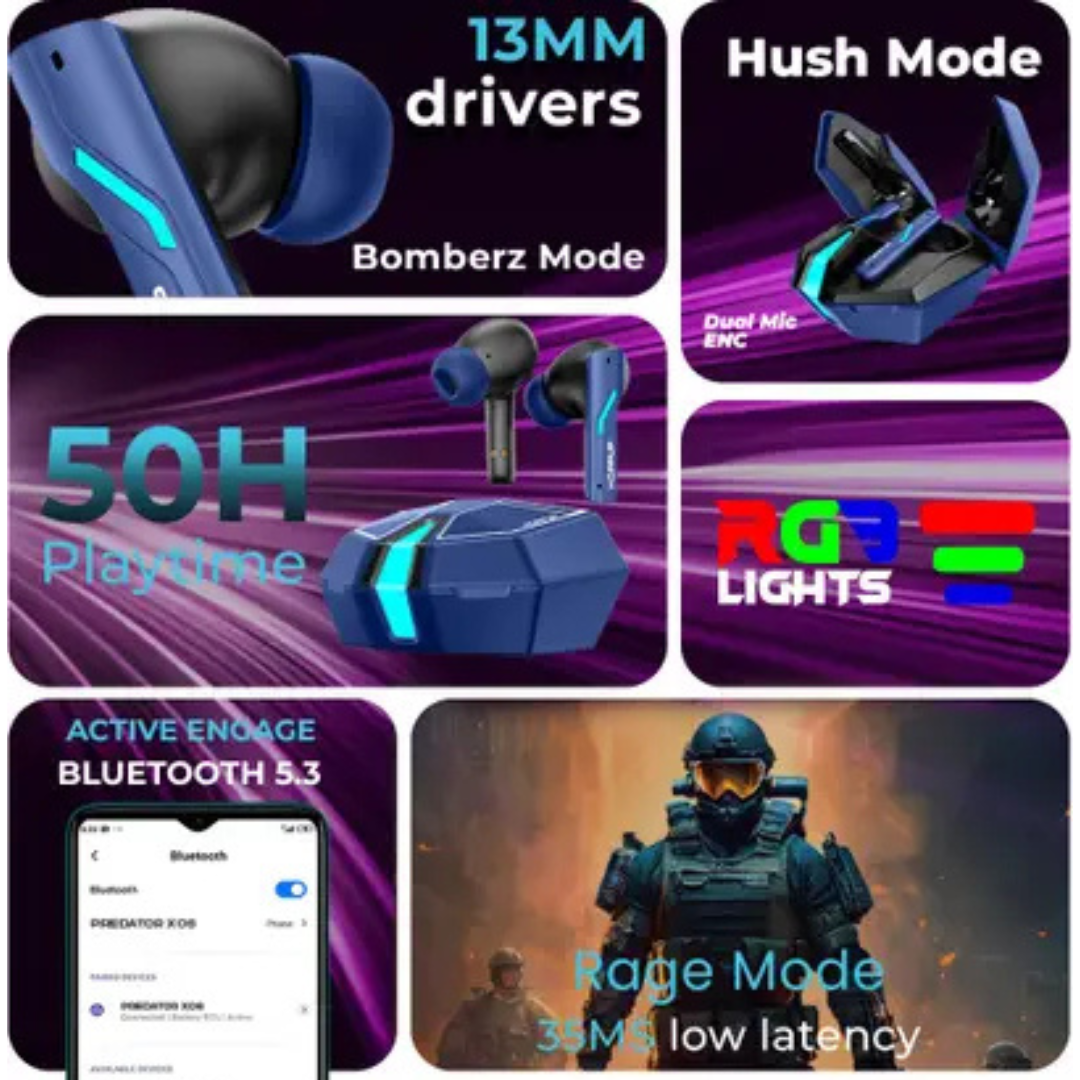 HOPPUP Xo6 Gaming Earbuds with 35MS Low Latency, RGB LED, 13MM DRIVERS & 50H PlayTime Bluetooth (Cobalt Blue, True Wireless)