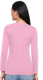 Women Printed Round Neck Cotton Blend Pink T-Shirt