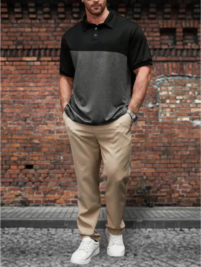Men Colorblock Polo Neck Cotton Blend Grey T-Shirt