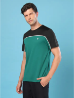 Men Colorblock Round Neck Polyester Green T-Shirt