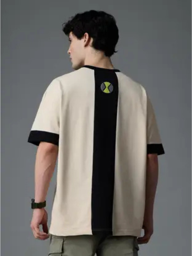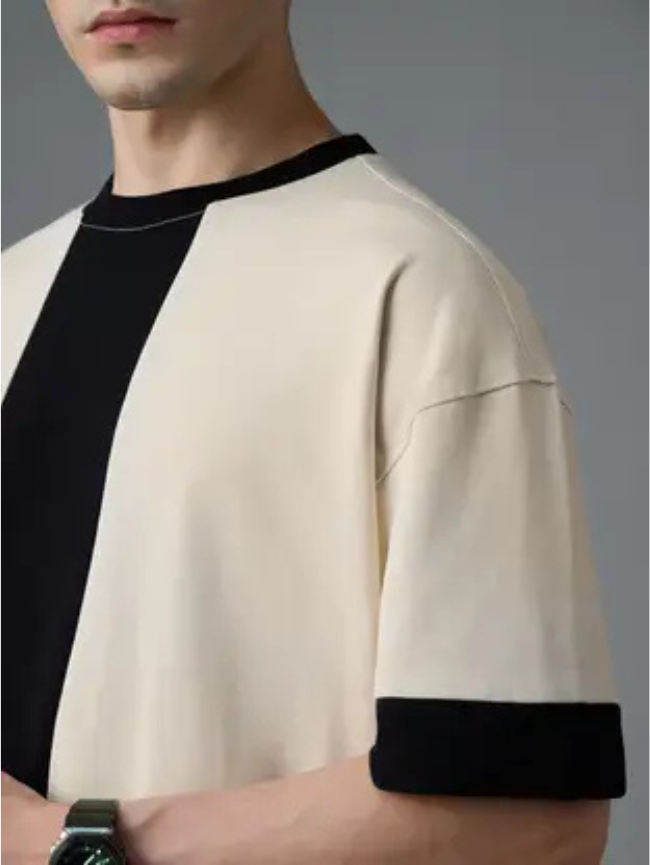 Men Colorblock Round Neck Pure Cotton White T-Shirt