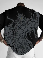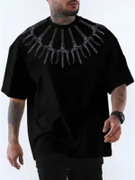 Men Graphic Print Round Neck Cotton Blend Black T-Shirt