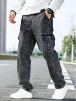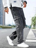 Men Loose Fit Mid Rise Dark Grey Jeans
