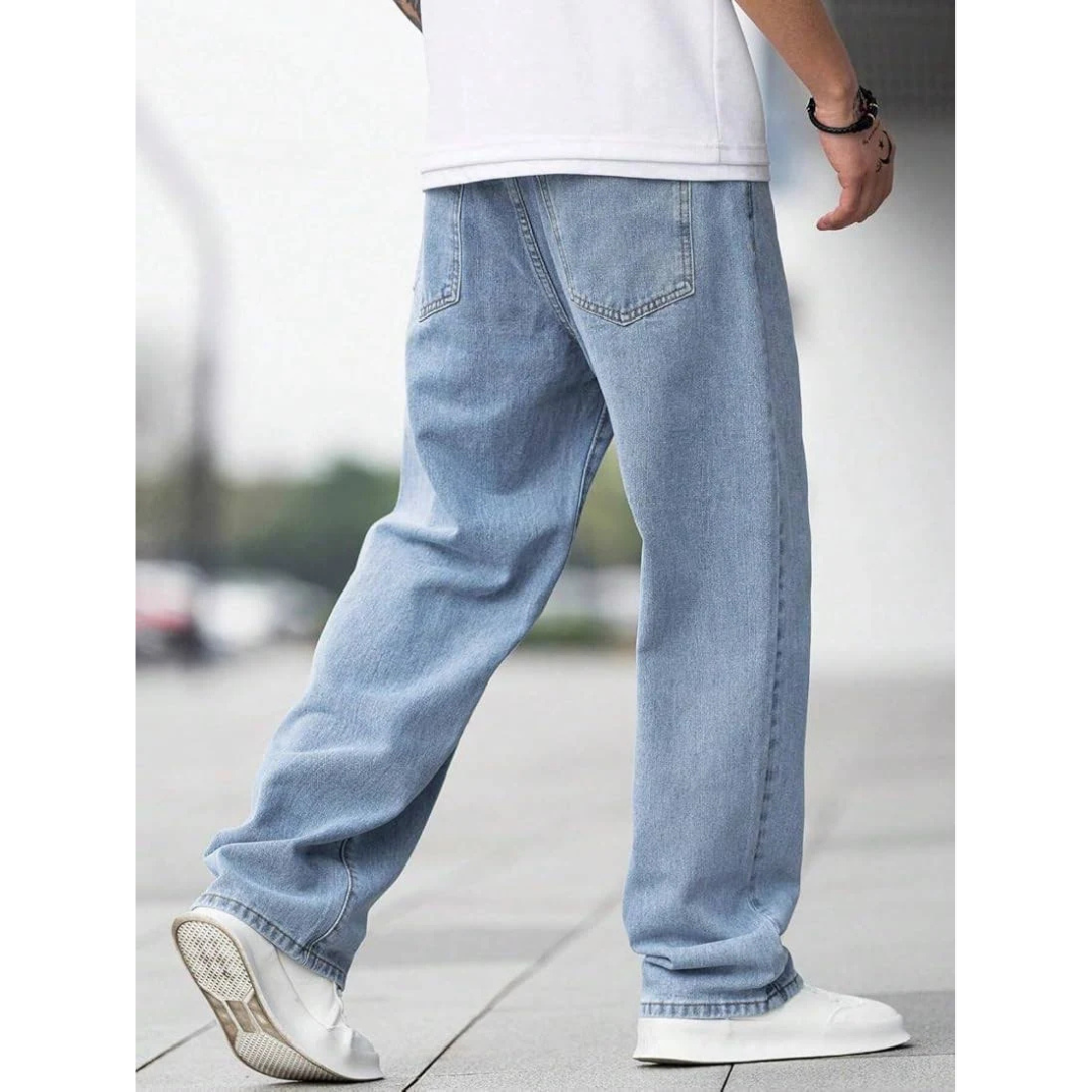 Men Loose Fit Mid Rise Light Blue Jeans