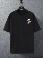 Men Printed Round Neck Cotton Blend Black T-Shirt