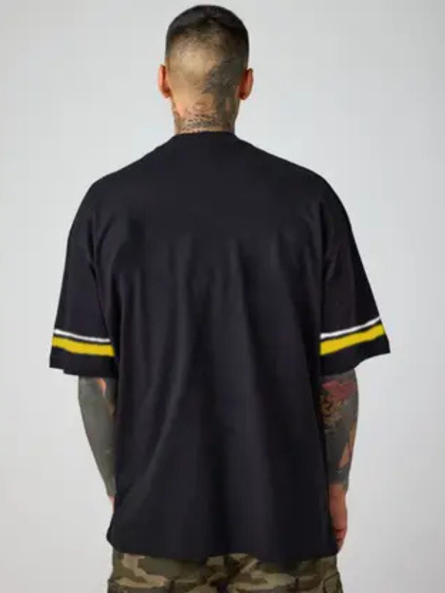 Men Printed Round Neck Cotton Blend Black T-Shirt