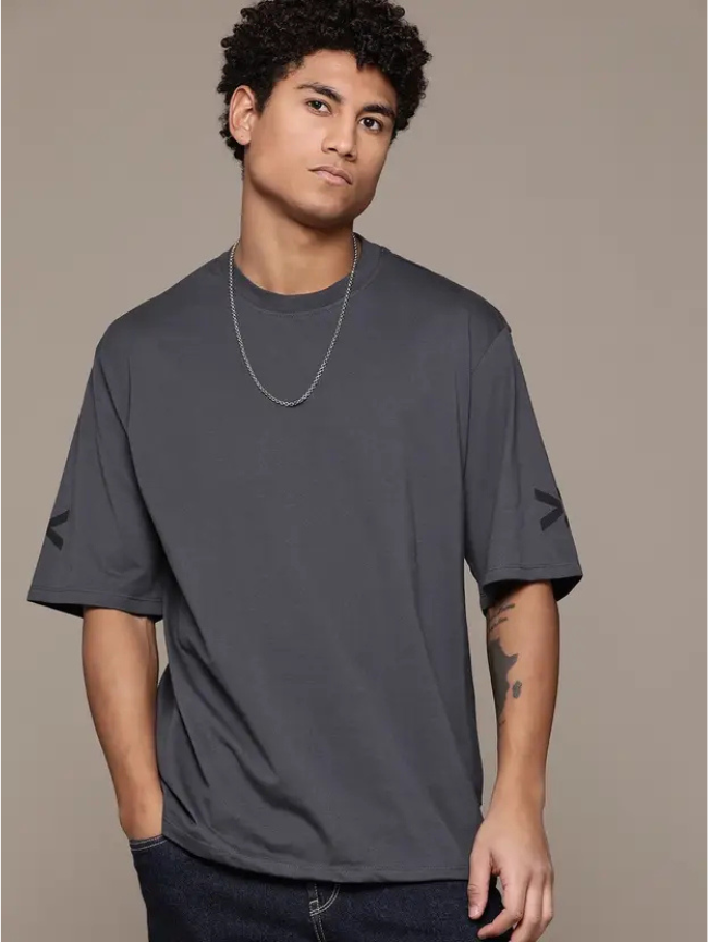 Men Printed Round Neck Cotton Blend Grey T-Shirt