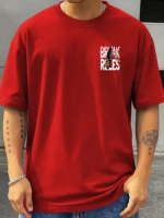 Men Printed Round Neck Cotton Blend Red T-Shirt