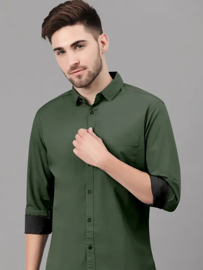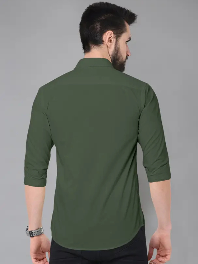 Men Regular Fit Solid Spread Collar Casual Shirt