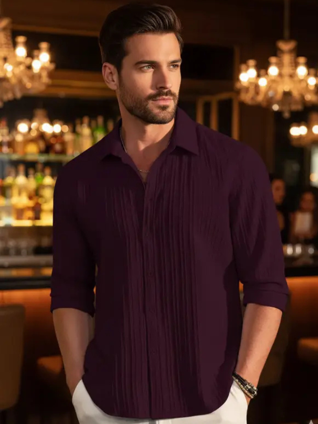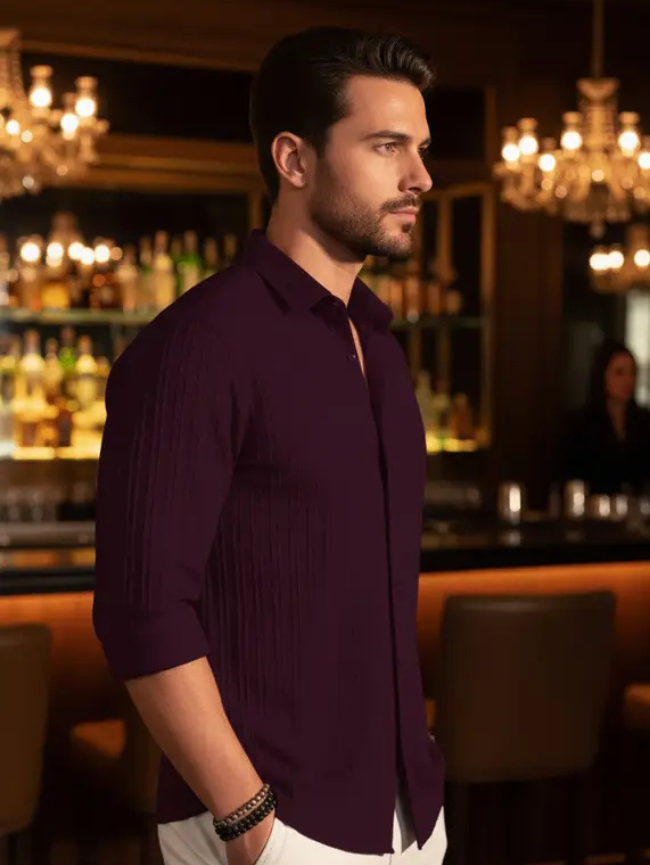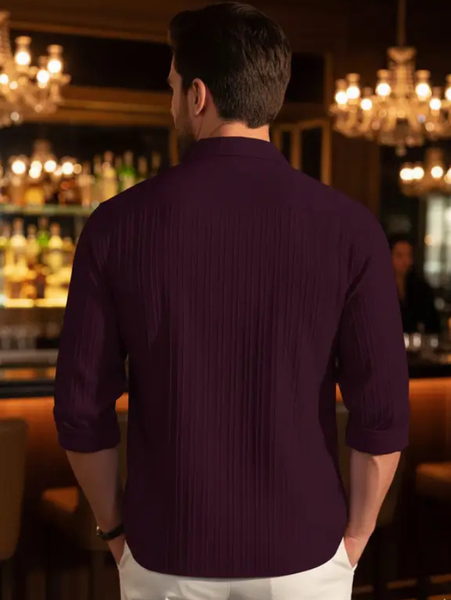 Men Regular Fit Striped Spread Collar Casual Shirt