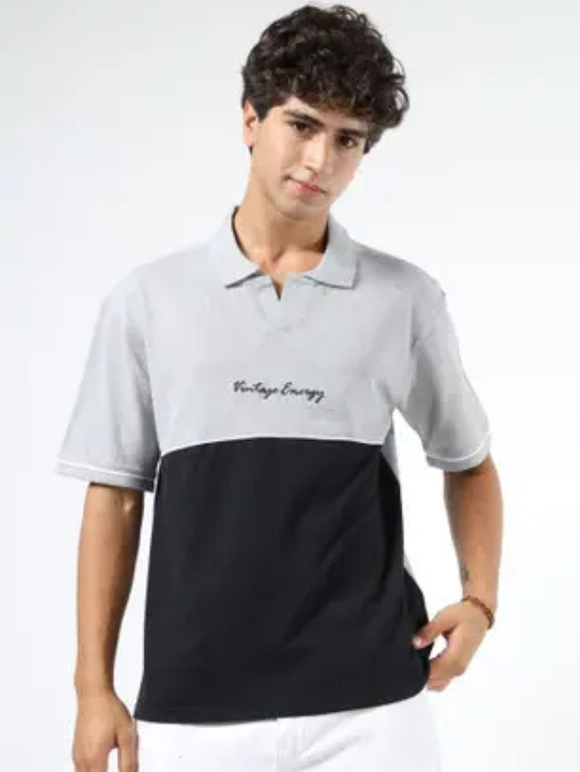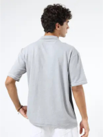 Men Self Design Polo Neck Cotton Blend Grey T-Shirt