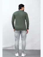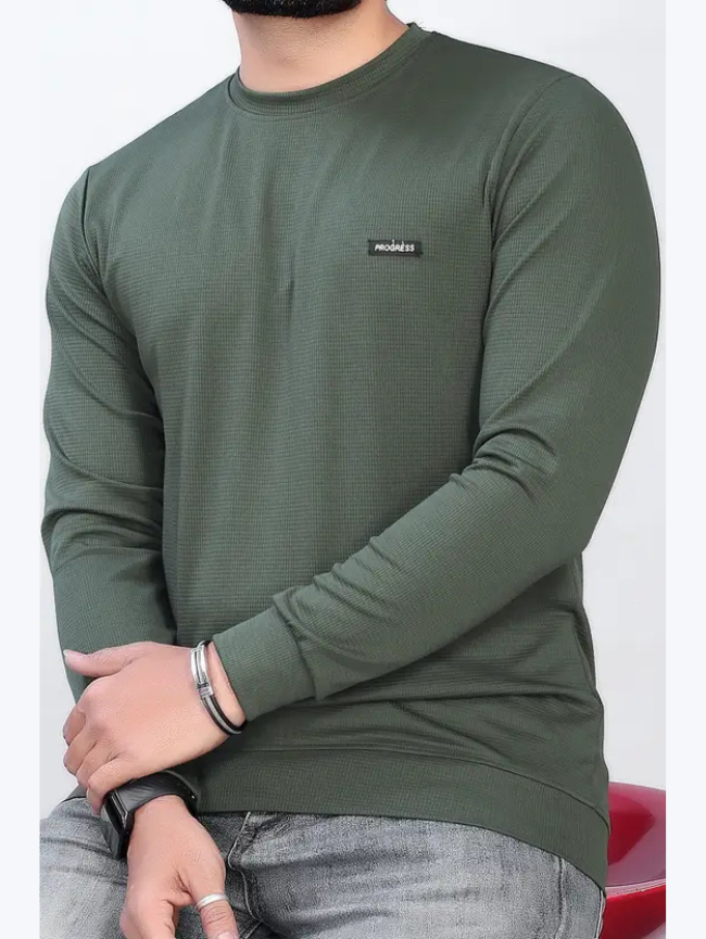 Men Self Design Round Neck Polyester Dark Green T-Shirt
