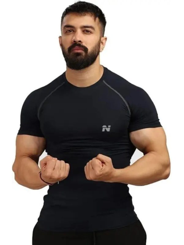 Men Self Design Round Neck Polyester Dark Green T-Shirt