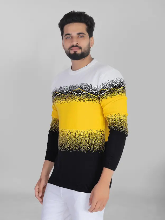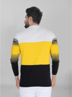 Men Self Design Round Neck Pure Cotton Yellow T-Shirt