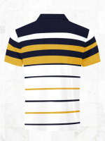 Men Self Design, Striped Polo Neck Cotton Blend White, Blue, Yellow T-Shirt