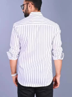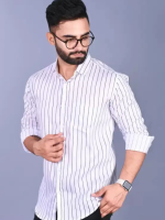 Men Slim Fit Striped Spread Collar Casual Shirt