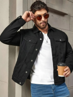 - Stylish Black Denim Jacket ; Trendy Heavy Washed Pattern; 100% Mercerised Denim Cotton Fabric ; Regular Fit ; Buttoned Full-Front Opening ; Slim Collar