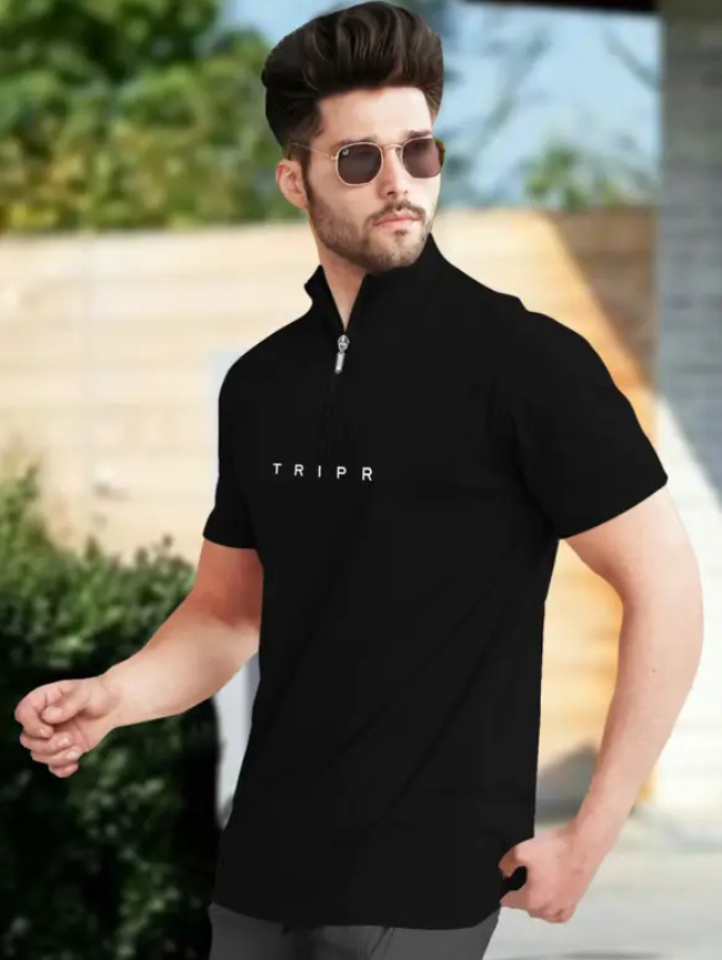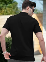 Men Solid Mandarin Collar Cotton Blend Black T-Shirt