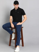 Men Solid Polo Neck Cotton Blend Black T-Shirt