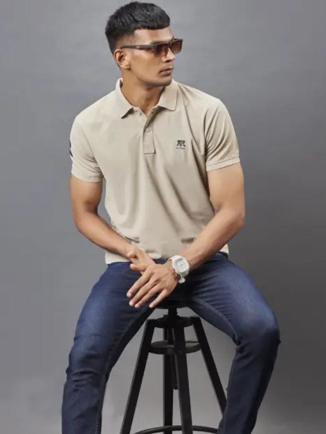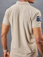 Men Solid Polo Neck Polyester Beige T-Shirt