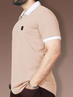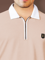 Men Solid Polo Neck Polyester Beige T-Shirt