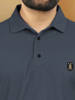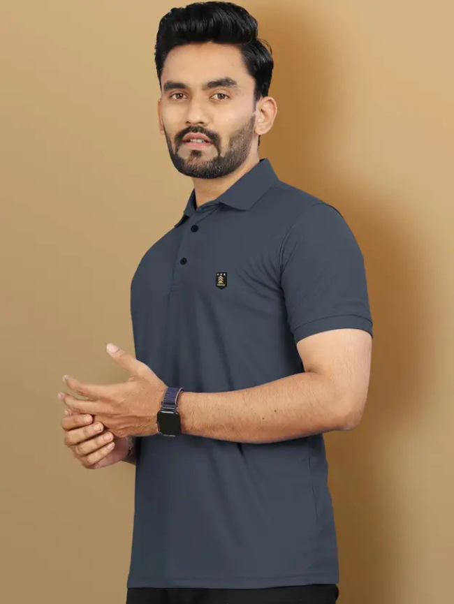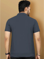 Men Solid Polo Neck Polyester Grey T-Shirt