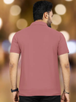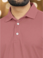 Men Solid Polo Neck Polyester Pink T-Shirt